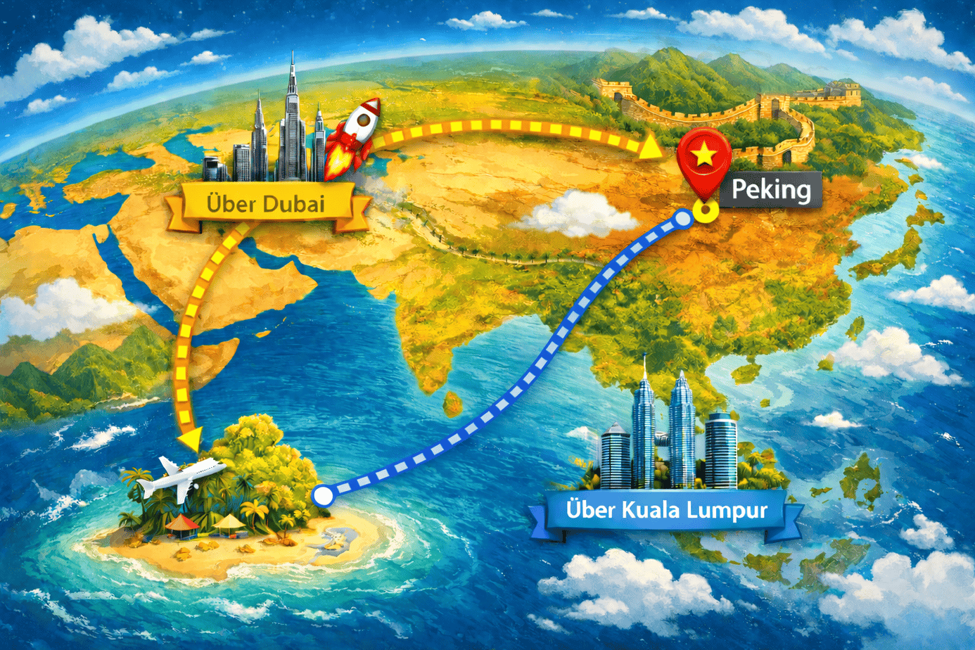 Im April reisen wir nach China und Hongkong, hier könnt Ihr schon mal unsere Route ansehen. Wir sind einen Monat unterwegs, mit Flugzeug, Zug, Schiff, Floss, Auto und auch mal mit dem Fahrrad.