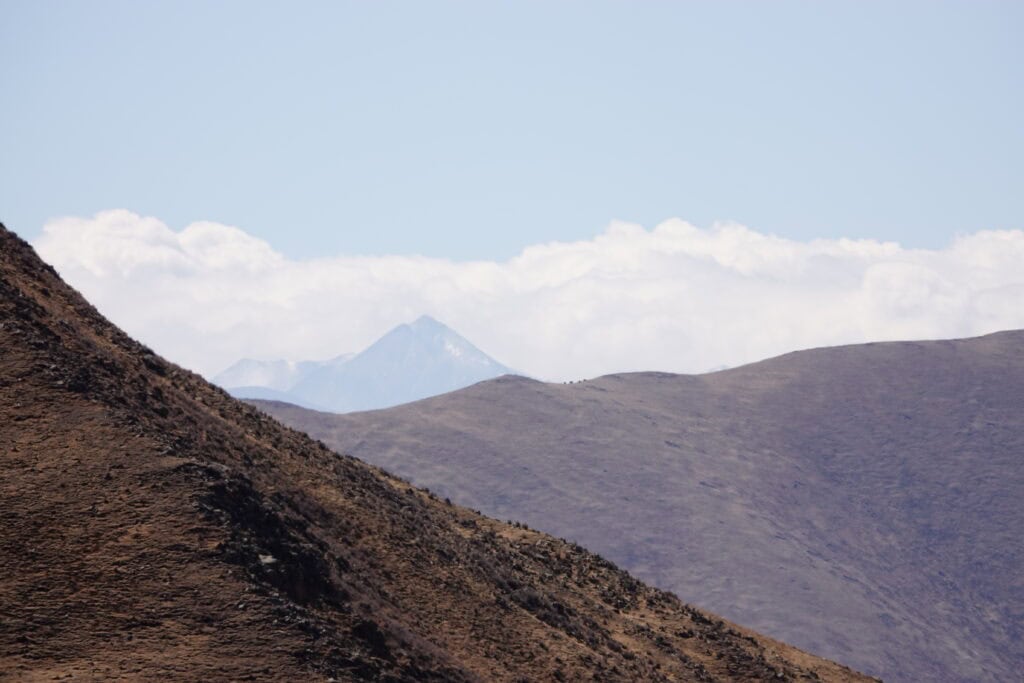 Ganz weit in der Ferne sieht man einen 7000 Gipfel vom äusseren Ende des Himalaya Gebirgszug.