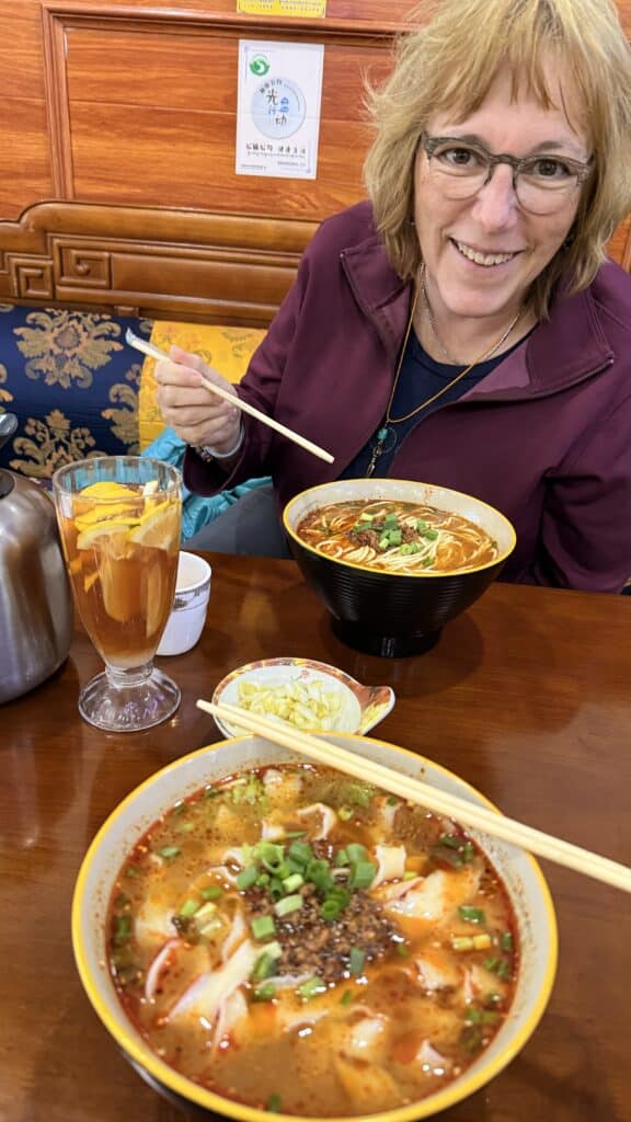 Zur Stärkung gehts in ein tibetisches Restaurant wo alle Touristen hingehen. Nichts desto trotz war es sehr lecker Nudelsuppe mit Yakfleisch.