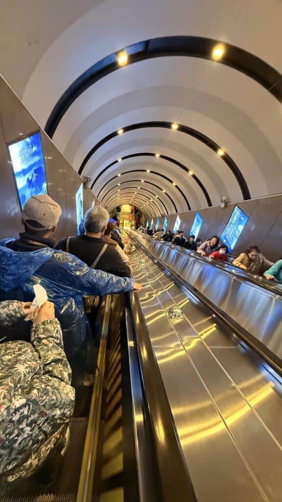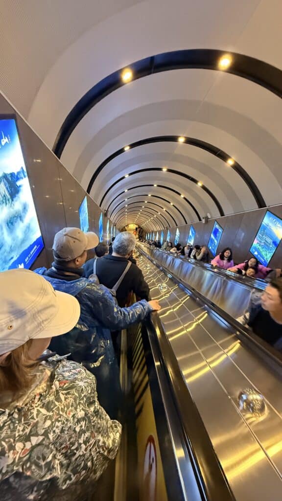 Und ja wir waren nicht ganz die Einzigen, die die Aussicht geniessen wollten. Es war ja nur die Zwischenstation, es liegen nun nochmals 7 Rolltreppen vor uns.