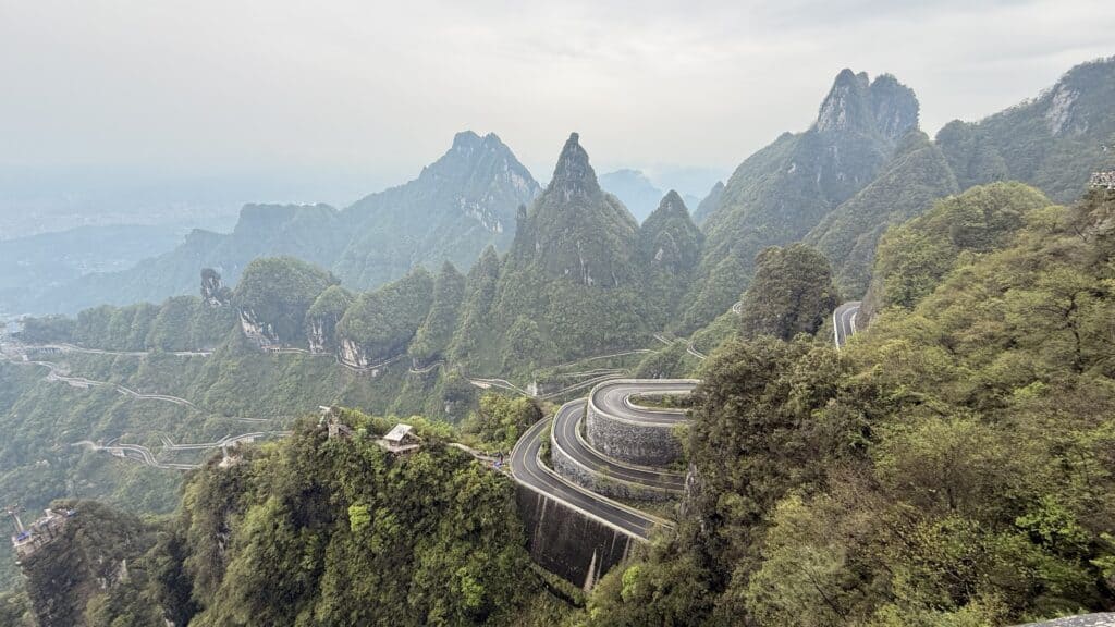Früh geht es los, packen, frühstücken und um 7:30 Uhr treffen wir Mr. Hu und Alex. Beim Bäcker um die Ecke, Sie erkennen uns schon, holen wir einen Kaffe und ein wenig Verpflegung für später im Zug. Das Ziel Heute ist der Tianmen-Berg, der nur acht Kilometer südlich des Dorfes Zhangjiajie liegt. Das Tianmen-Berg-Naturschutzgebiet wurde zum zweiten nationalen Waldpark in Zhangjiajie ernannt. Mit einer Höhe von fast 1.520 Metern ist Tianmen (Himmelstor) der höchste Gipfel in Zhangjiajie und wird oft als die „Seele” der Region bezeichnet. Der Berg ist mit anmutigen Bäumen, Karsthügeln und einer Vielzahl von Heilkräutern und Pflanzen geschmückt. Tianmen rühmt sich auch seiner „vier Wunder”, zu denen die Tianmen-Bergbahn, Tongtian Dadao (die Straße zum Himmel), die Tianmen-Höhle und der Bonsai-Garten in der Luft gehören. Für den Bonsai Garten hat es nicht gereicht.