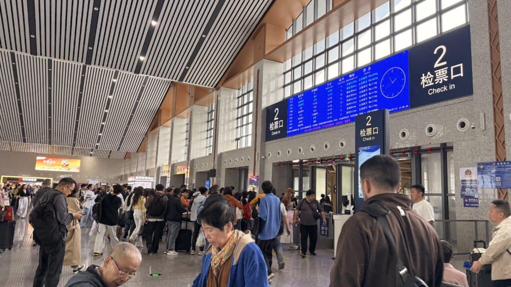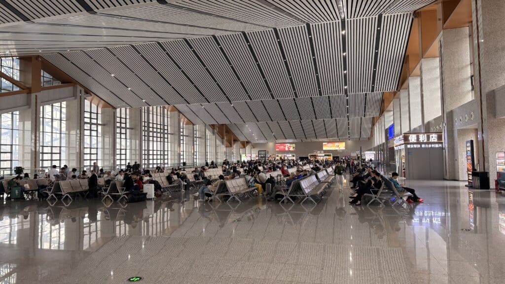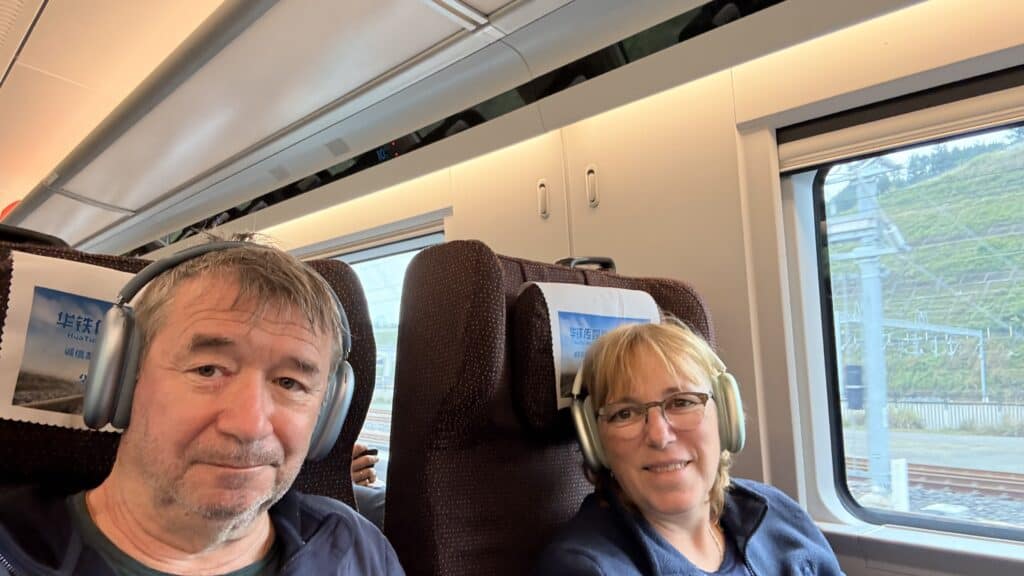 Nun ist es Zeit zum Aufbruch wir fahren zum Bahnhof Zhangjiajie, hier nehmen wir den Zug nach Shanghai (14:38-21:57) es sind fast 1350 km, die wir in etwas mehr als 7 Stunden zurücklegen.