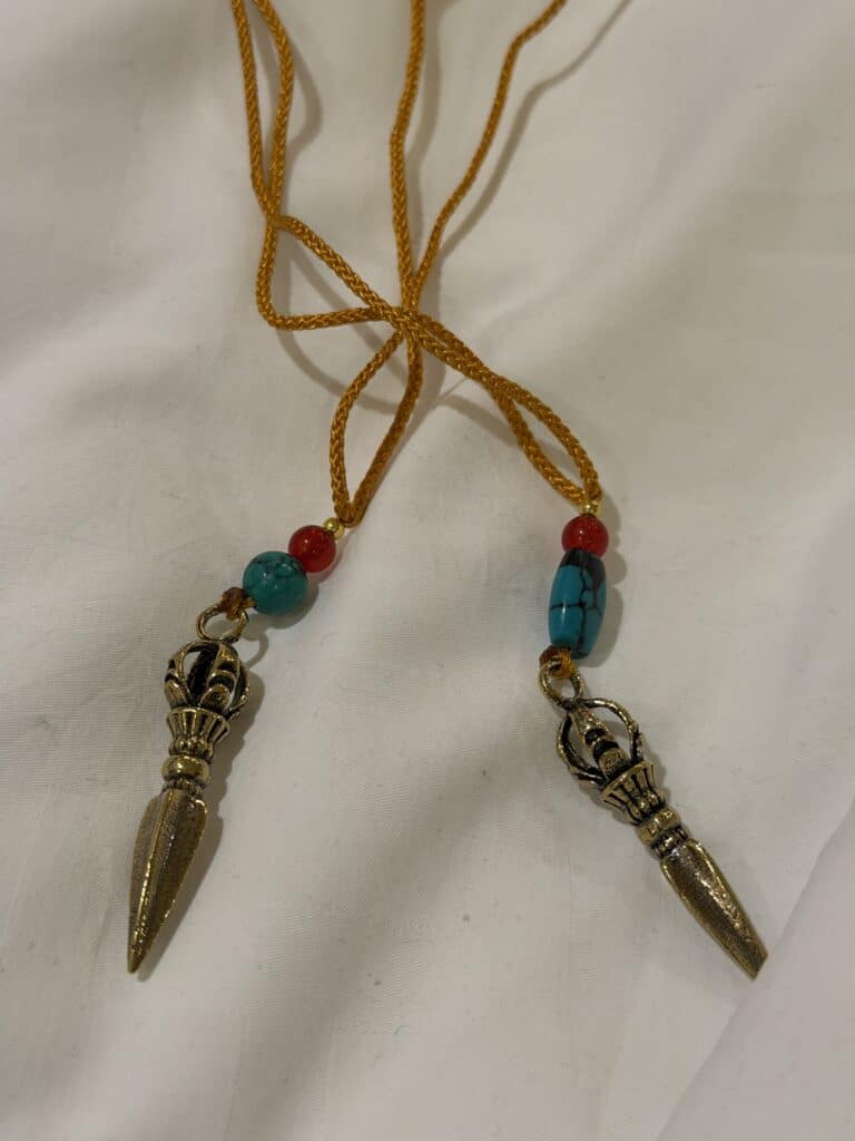 Nous avons acheté un coin du tonnerre. Spirituellement, il est considéré comme une puissante amulette de protection, censée repousser le malheur, la foudre et les mauvais esprits. Il symbolise la force, l'illumination et la sagesse indestructibles qui tranchent les illusions. Alors, rien ne peut aller de travers.
